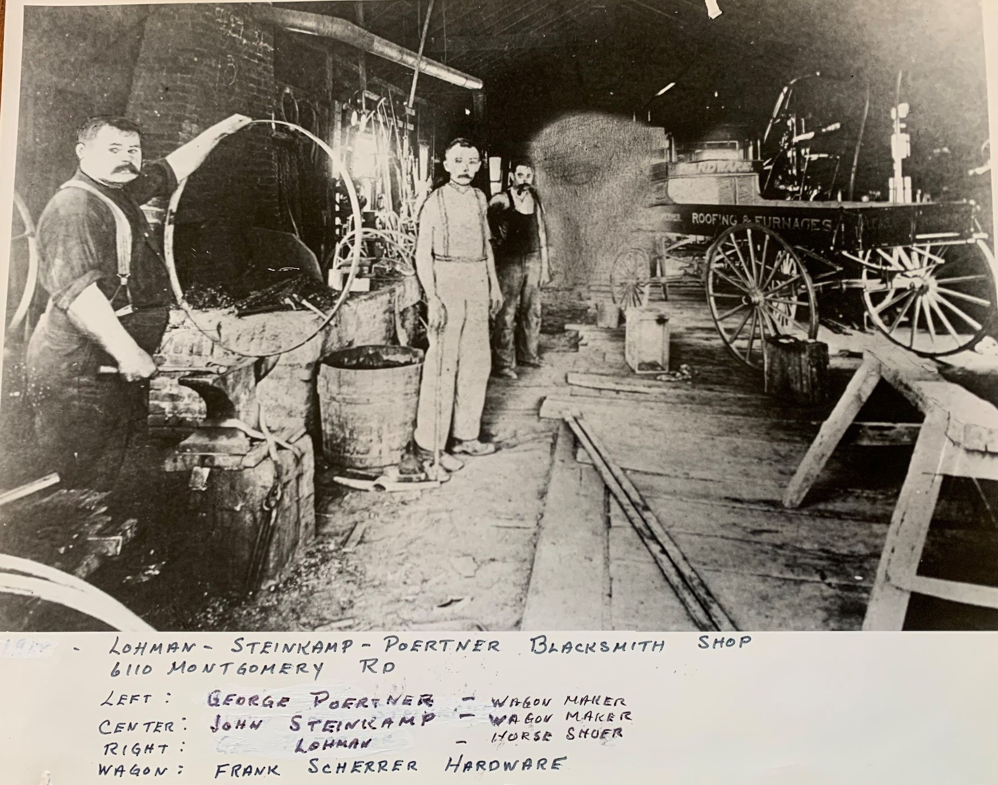 John lived very close to work. Just around the corner was his blacksmith shop at 6110 Montgomery Road, near where Everybody’s Records currently stands.