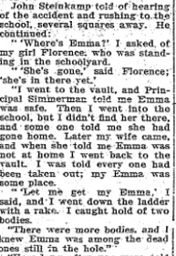The principal erroneously assured poor John that Emily was safe and that she had gone home. When Emily could not be found, John returned to the school where the principal insisted that all of the girls had been saved, that Emily was somewhere else.